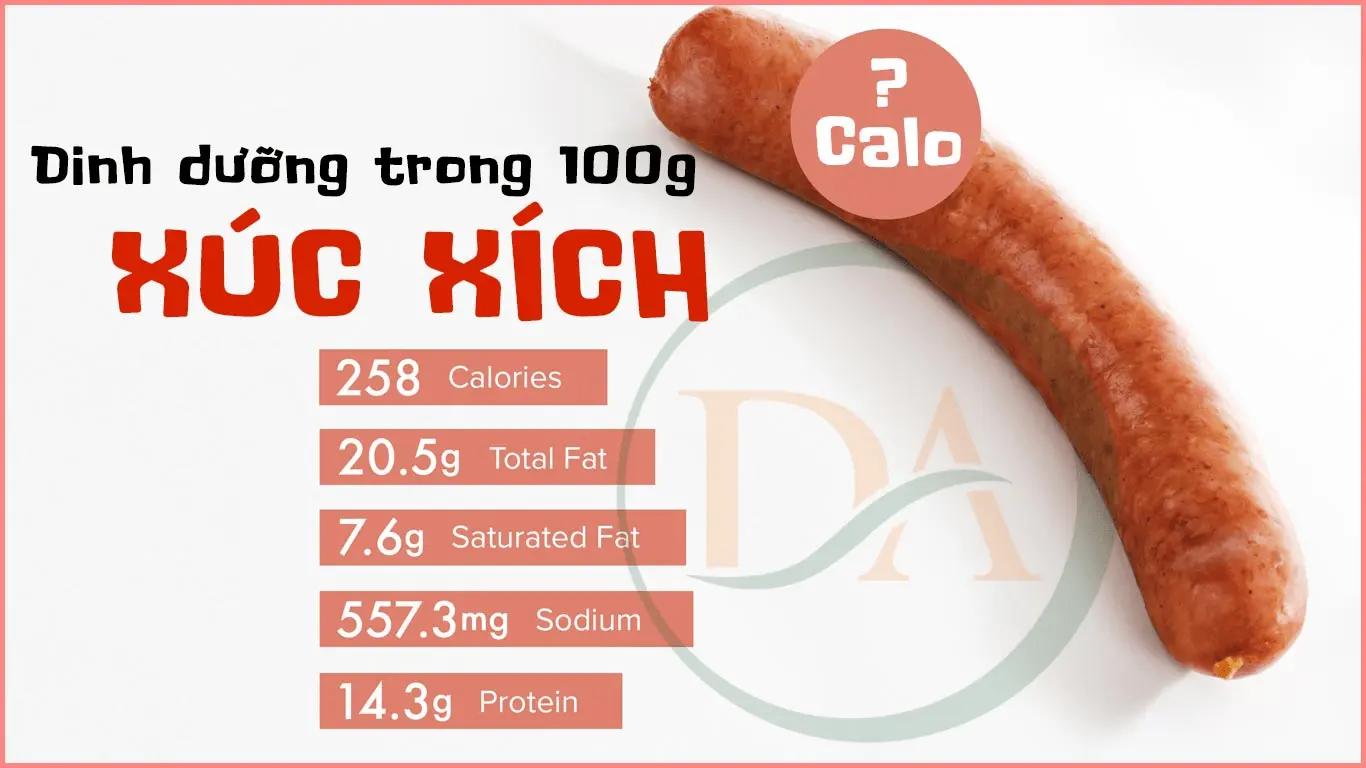 Xúc xích là món ăn được nhiều người yêu thích nhờ vào hương vị thơm ngon và sự tiện lợi trong chế biến. Thế nhưng, có thể bạn chưa biết rằng hàm lượng calo trong xúc xích khá cao. Một cây xúc xích heo chỉ khoảng 35g đã chứa tới 45 calo. Nếu tính ra 100g xúc xích heo có thể cung cấp hơn 300 calo, đây là một con số không hề nhỏ cho những ai đang chú ý đến cân nặng.