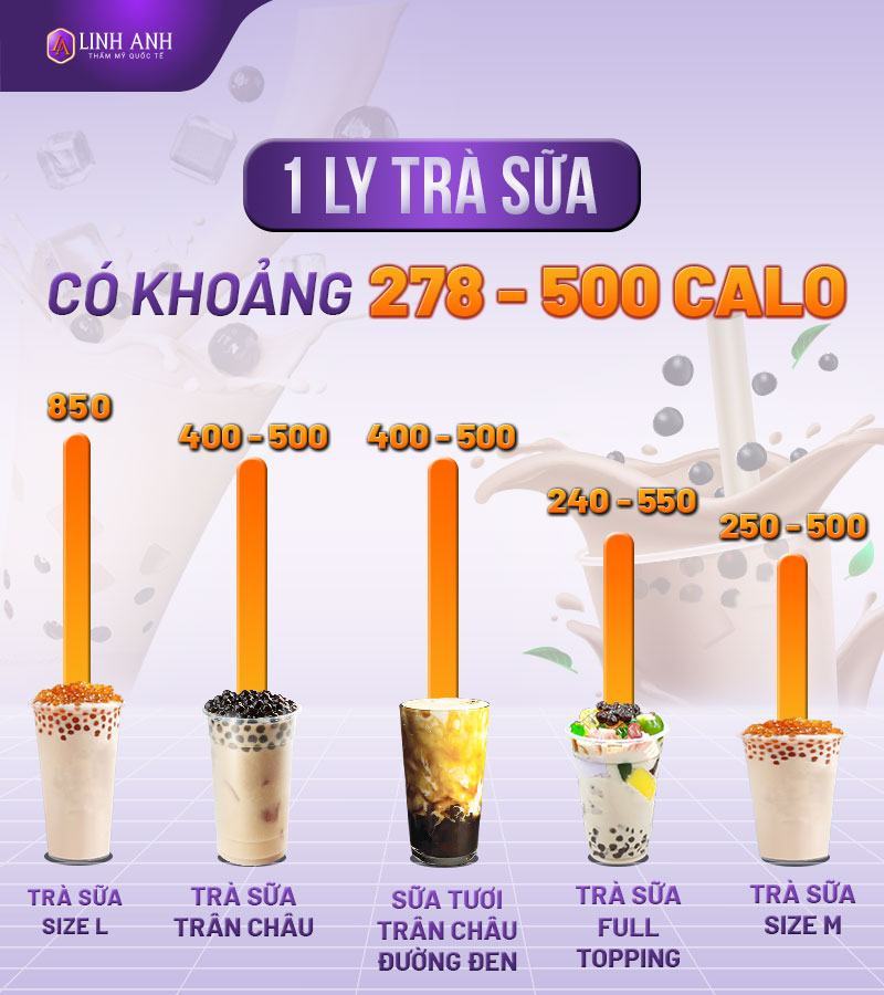 Nếu bạn chỉ thưởng thức khoảng 100ml trà sữa, bạn sẽ hấp thụ khoảng 100 calo, tương đương với một chiếc bánh bao nhỏ. Tuy nhiên, điều đáng lưu ý là mỗi loại trà sữa khác nhau lại có hàm lượng calo khác nhau. Chẳng hạn, trà sữa hồng trà chỉ chứa khoảng 250 calo trong khi trà sữa trân châu đường đen có thể lên tới 735 calo. Vì vậy, trước khi uống, bạn nên kiểm tra kỹ thành phần để giữ gìn sức khỏe nhé!