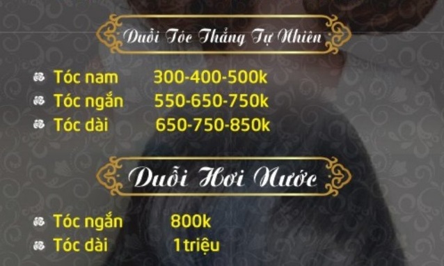 Ngoài ra, nếu bạn chọn dịch vụ duỗi tóc hơi nước, giá cả cũng khá đa dạng, thường nằm trong khoảng 800.000 đến 1.600.000 đồng. Dịch vụ này không chỉ giúp tóc thẳng mà còn mang lại độ bóng mượt, dễ chăm sóc. Mỗi salon thường có bảng giá riêng cho các dịch vụ như cắt, uốn, nhuộm và duỗi tóc, nên bạn có thể dễ dàng lựa chọn theo nhu cầu và ngân sách của mình.