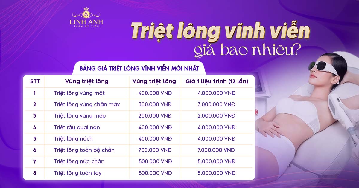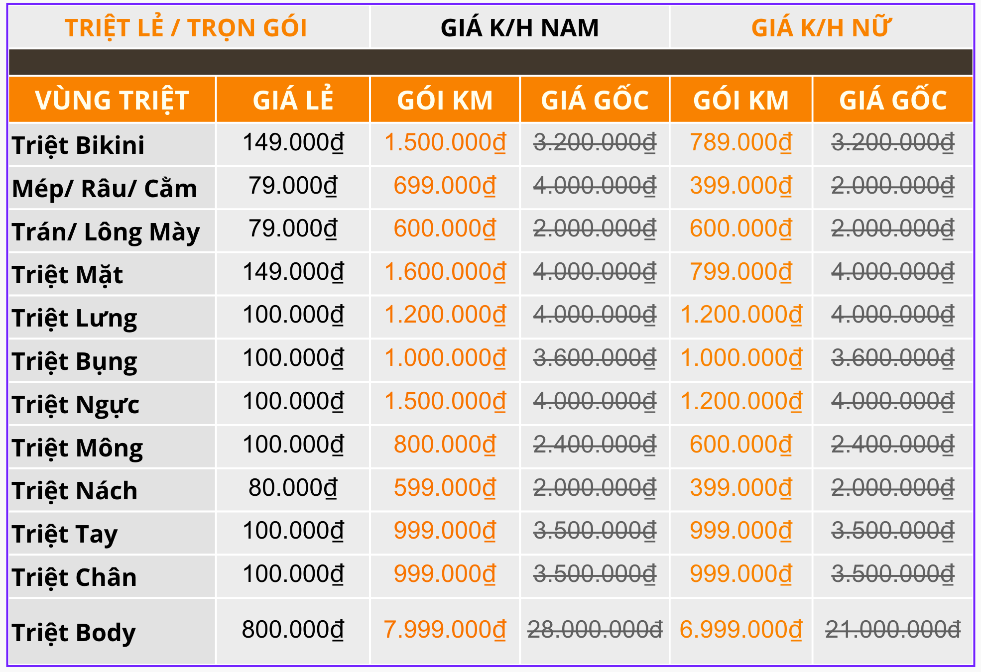 Bảng Giá Triệt Lông Vĩnh Viễn