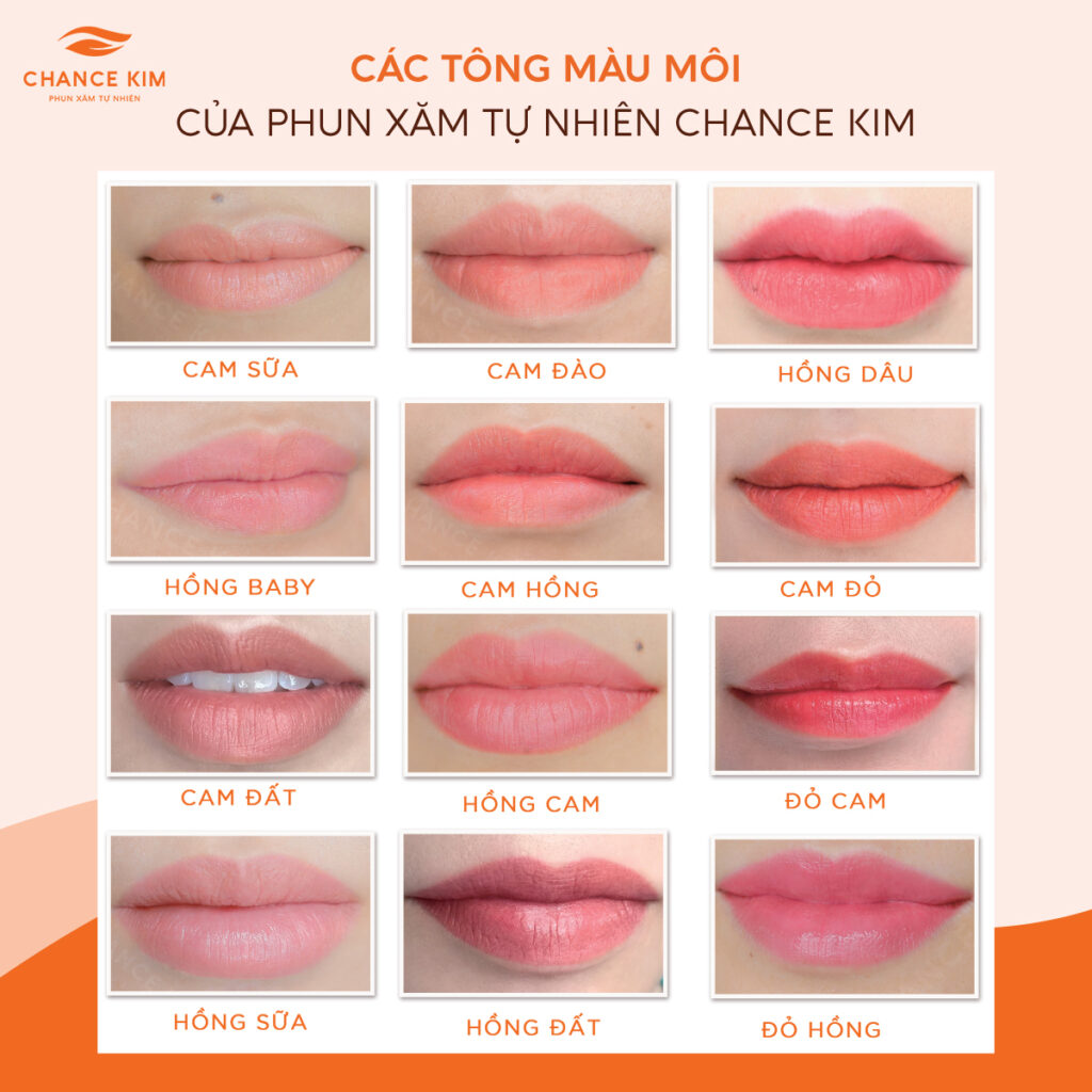 Khi lựa chọn bảng màu phun môi collagen, việc tìm ra tông màu ưng ý là rất quan trọng. Các gam màu được ưa chuộng như hồng đào, cam đào, đỏ cam ruby hay cam đất không chỉ mang lại sự trẻ trung mà còn giúp tôn lên làn da của bạn. Tuy nhiên, bạn cần lưu ý rằng một số màu như hồng baby hay cam san hô có thể xuống tone khi lên màu, vì vậy hãy cân nhắc kỹ lưỡng.