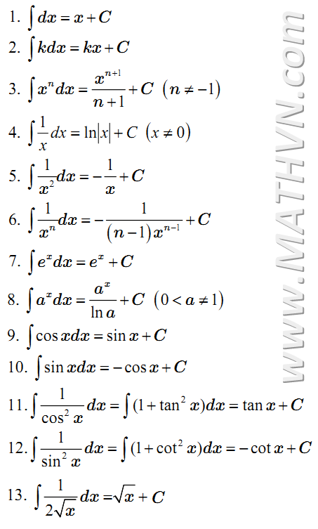 Trong toán học, có nhiều quy tắc và công thức để tìm nguyên hàm của các hàm số khác nhau. Ví dụ, bảng nguyên hàm cơ bản thường gặp bao gồm những hàm như hàm lũy thừa, hàm số mũ, và hàm lượng giác. Mỗi hàm có những đặc điểm riêng cần nắm rõ để áp dụng vào thực tế.