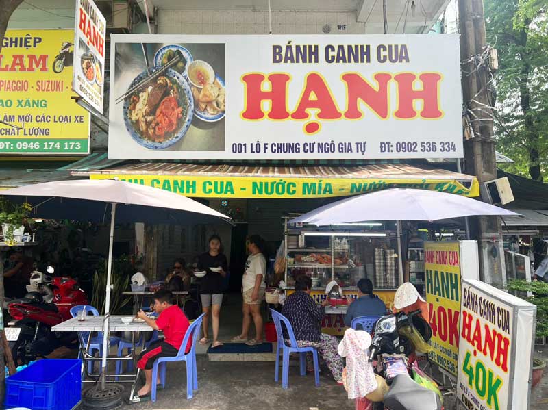 Khi tìm kiếm một quán bánh canh ngon tại Sài Gòn, Bánh Canh Cua Hạnh chính là một địa chỉ đáng thử. Quán mới dời về khu chung cư Ngô Gia Tự, có lẽ vì vậy mà lúc đầu hơi khó tìm, nhưng khi đến nơi, bạn sẽ được thưởng thức không gian thoáng đãng bên ngoài, rất lý tưởng để thưởng thức món ăn.