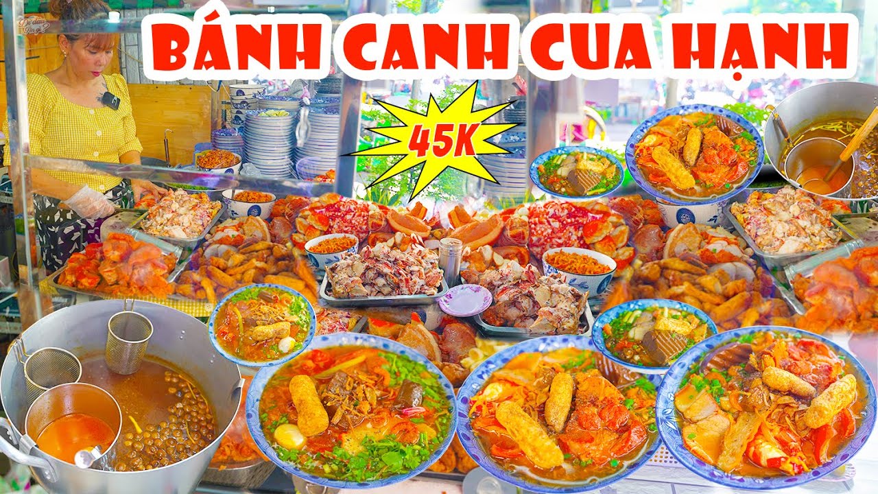Quán Bánh Canh Cua Hạnh luôn đông đúc, khách ra vào liên tục, điều đó chứng tỏ sức hút đặc biệt của nó. Thực đơn nơi đây rất đa dạng với các loại topping như thịt nạc heo xắt lát, trứng cút, cua, tôm, chả cá cùng nhiều lựa chọn hấp dẫn khác như giò heo gân, giò heo nạc hay móng heo. Mỗi tô bánh canh được phục vụ nóng hổi, đảm bảo sẽ làm hài lòng ngay cả những thực khách khó tính nhất.