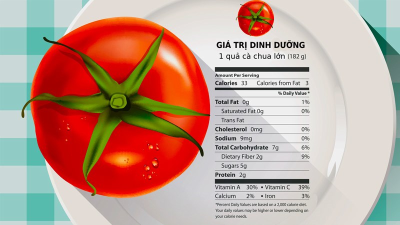 Ngoài việc ít calo, cà chua còn giàu chất dinh dưỡng. Mỗi 100 gram cà chua cung cấp khoảng 3,9 gram carbs, 1,2 gram chất xơ và ít chất béo, chỉ khoảng 0,2 gram. Điều này giúp hỗ trợ tiêu hóa và cung cấp năng lượng cho cơ thể mà không gây tích tụ mỡ thừa. Đặc biệt, cà chua còn rất giàu vitamin A và vitamin C, giúp tăng cường sức đề kháng, làm đẹp da và bảo vệ cơ thể khỏi các tác nhân xấu từ môi trường.