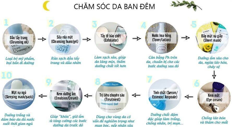 Tóm lại, quy trình chăm sóc da ban đêm là bước quan trọng không thể thiếu trong routine làm đẹp của mỗi người. Bắt đầu từ việc làm sạch để loại bỏ bụi bẩn và tạp chất, tiếp đến là các sản phẩm dưỡng ẩm, trị mụn hay serum đặc trị giúp nuôi dưỡng và phục hồi làn da hiệu quả. Đừng quên thoa kem chống nắng vào buổi sáng để bảo vệ làn da khỏi tác hại của tia UV. Bằng cách chăm sóc da đúng cách vào ban đêm, bạn sẽ thấy sự thay đổi tích cực trong sức khỏe và vẻ đẹp của làn da, giúp bạn tự tin hơn mỗi ngày.