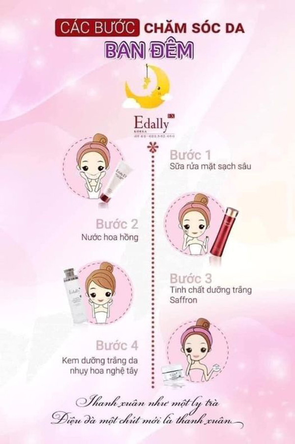 Để có một quy trình dưỡng da hiệu quả, hãy bắt đầu với việc làm sạch da mặt bằng sữa rửa mặt và nước tẩy trang. Tiếp theo, cân bằng độ ẩm bằng cách sử dụng tinh chất hoặc kem dưỡng ẩm trước khi áp dụng kem đặc trị. Lưu ý rằng việc chờ thẩm thấu giữa các bước là rất cần thiết để sản phẩm phát huy tối đa công dụng.