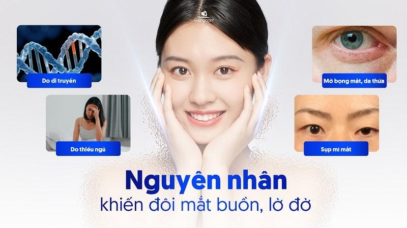 Mắt buồn thường được hình thành do nhiều nguyên nhân khác nhau, trong đó di truyền là yếu tố không thể bỏ qua. Có những người sinh ra đã mang đôi mắt buồn bã, khiến diện mạo của họ trở nên kém sức sống. Thêm vào đó, việc thiếu ngủ kéo dài chính là tác nhân gây ra tình trạng thâm quầng, hốc hác quanh mắt, làm tăng thêm vẻ buồn bã.