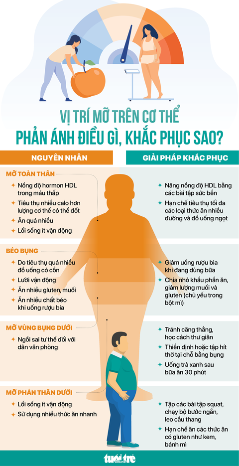 Chế độ ăn uống là một nguyên nhân chủ yếu. Việc tiêu thụ nhiều chất béo xấu, đường và tinh bột không chỉ gây tăng cân mà còn làm tăng lượng mỡ tích tụ ở vùng bụng. Bên cạnh đó, lối sống ít vận động, đặc biệt là ngồi nhiều khi làm việc cũng là yếu tố không thể bỏ qua. Khi cơ thể thiếu hoạt động, quá trình trao đổi chất sẽ chậm lại, làm tăng nguy cơ béo bụng.