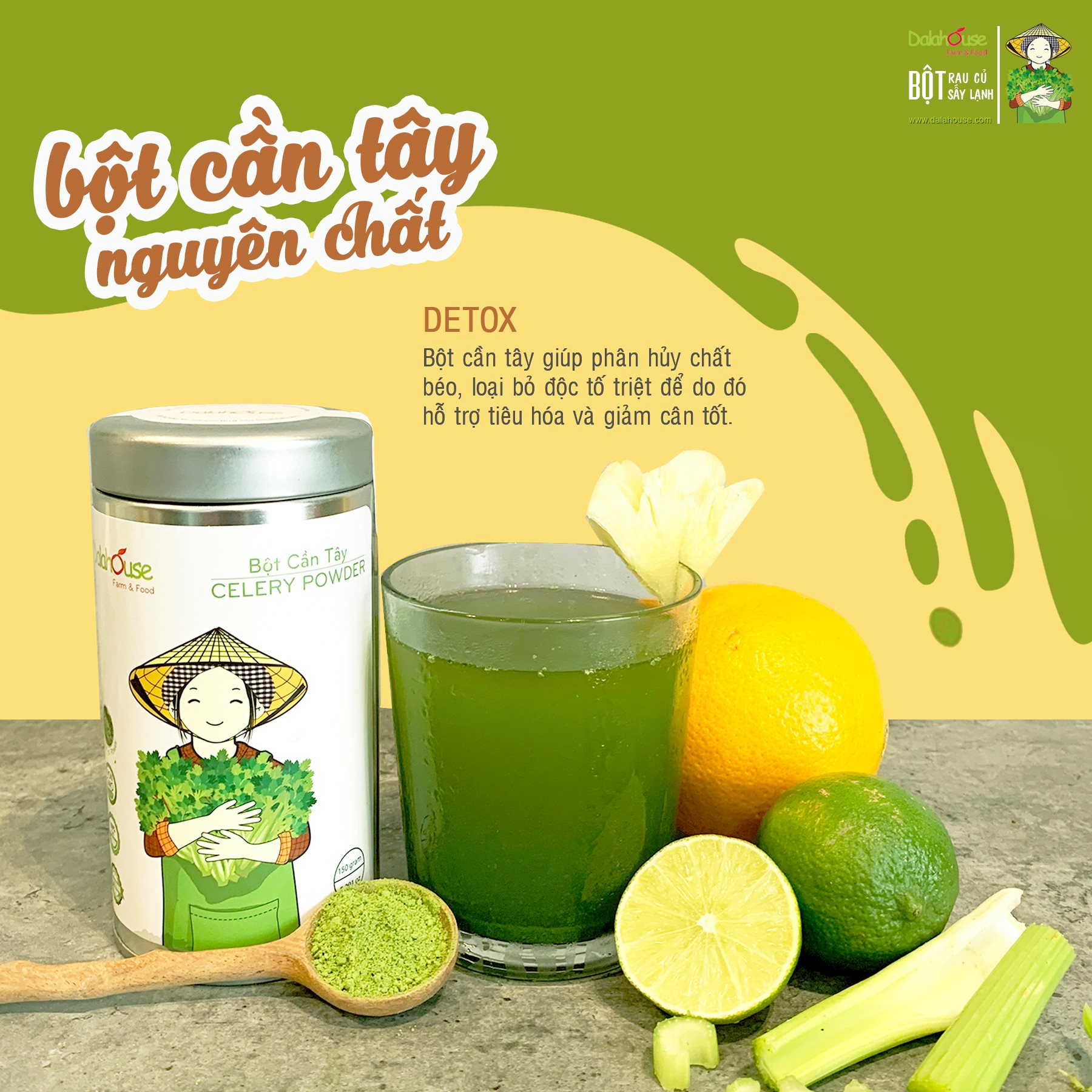 Bột cần tây nguyên chất sấy lạnh cũng rất hữu ích trong việc thanh lọc cơ thể, làm no lâu và giảm cảm giác thèm ăn. Hãy thử nghiệm với công thức cần tây, táo xanh và chanh để không chỉ giảm cân mà còn hỗ trợ sức khỏe tim mạch. Hãy để nước ép cần tây đồng hành cùng bạn trên hành trình khỏe mạnh!