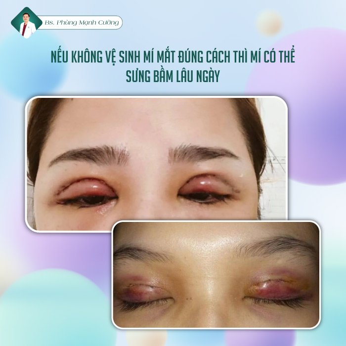 Khi mí mắt bị nhiễm trùng, nó sẽ không chỉ sưng tấy mà còn kèm theo đỏ và chảy dịch mủ. Nếu không được xử lý kịp thời, nguy cơ nhiễm trùng có thể lan rộng và gây ra nhiều vấn đề khác. Ngoài ra, bạn cũng nên chú ý đến cảm giác khó chịu hoặc cục cứng dưới da, đây có thể là dấu hiệu của phản ứng dị ứng hoặc kỹ thuật cắt mí không chính xác.