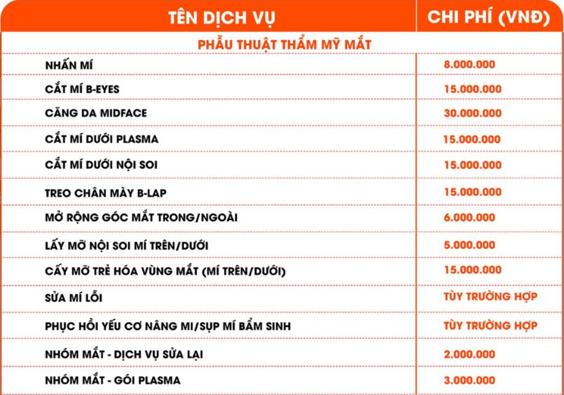 Chẳng hạn, tại một số cơ sở như Bệnh viện Thẩm mỹ Kangnam, bạn có thể tìm thấy những mức giá khác nhau cho các dịch vụ như cắt mí Hàn Quốc (10.000.000 VNĐ) hay cắt mí Plasma (9.000.000 VNĐ). Chắc chắn rằng mỗi người sẽ tìm được dịch vụ phù hợp với nhu cầu và ngân sách của mình, nhưng hãy nhớ lựa chọn nơi uy tín nhé!