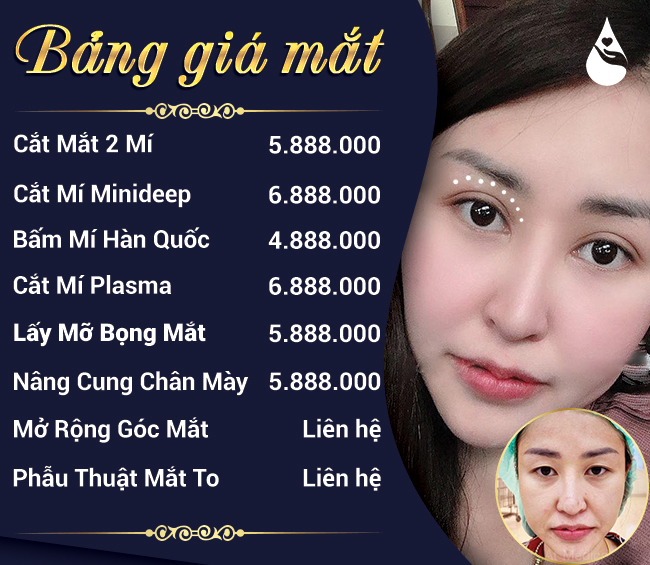 Thông thường, giá cắt mí mắt dao động từ 10 đến 30 triệu đồng. Để có con số chính xác cho ca phẫu thuật của mình, bạn nên đến trực tiếp các cơ sở thẩm mỹ hoặc bệnh viện để thăm khám. Tại Bệnh viện Thẩm mỹ Thu Cúc, giá cắt mí ở mức khoảng 9 triệu đồng, chưa áp dụng chương trình khuyến mãi.