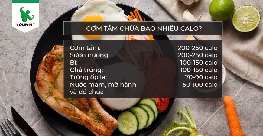Cơm tấm là một món ăn được yêu thích ở Việt Nam, không chỉ vì hương vị thơm ngon mà còn vì sự phong phú trong nguyên liệu. Trung bình, một dĩa cơm tấm đầy đủ topping, bao gồm sườn nướng, bì, chả và trứng, có thể chứa từ 700 đến 800 calo. Đây là một con số khá cao nếu so với các món ăn khác, nhưng cũng là điều dễ hiểu với lượng thành phần phong phú như vậy.