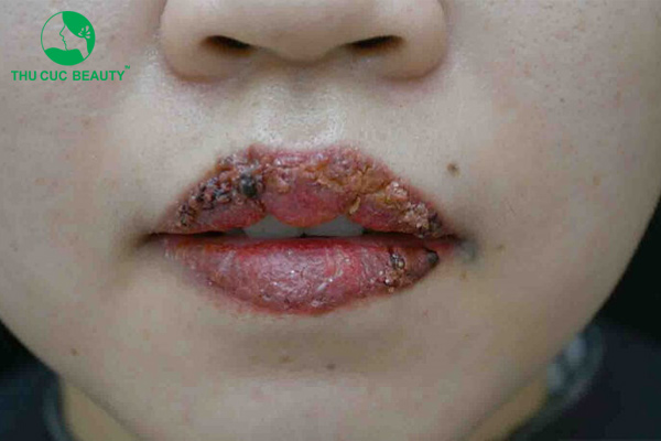 Đôi môi sưng mưng mủ đau nhức khó chịu
