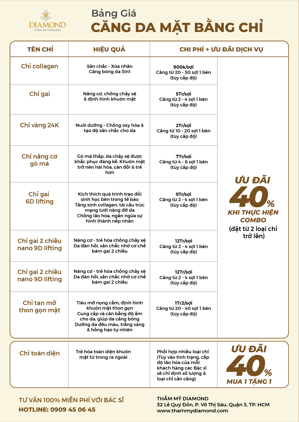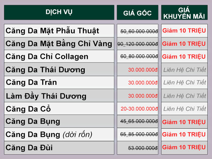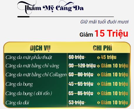 Bảng giá căng da mặt bằng chỉ hấp dẫn