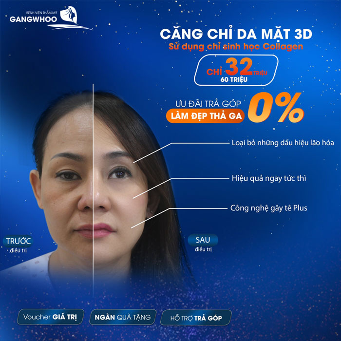 Phương pháp này sử dụng chỉ sinh học để kéo căng da một cách an toàn, hiệu quả. Mặc dù có nhiều lựa chọn, mức giá tổng thể cho việc căng da mặt bằng chỉ thường dao động từ 25.000.000 đến 100.000.000 VNĐ, vì vậy việc tìm hiểu kỹ thông tin sẽ giúp bạn có quyết định đúng đắn.