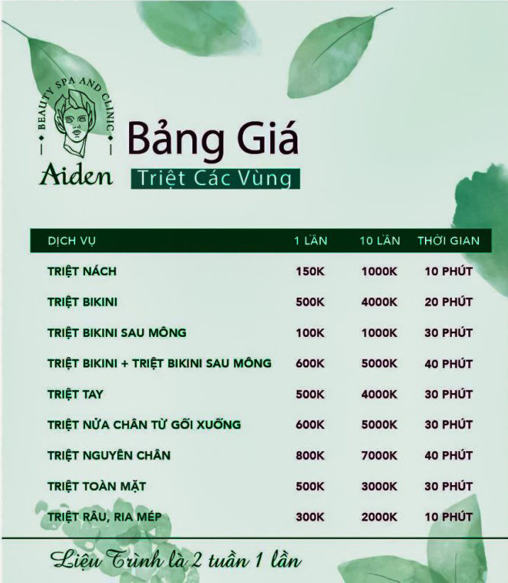 Thông thường, một liệu trình triệt lông nách sẽ kéo dài từ 4 đến 10 buổi, tùy vào tình trạng lông và nhu cầu của khách hàng. Một số spa còn có các gói combo hoặc ưu đãi giảm giá nếu bạn đăng ký nhiều buổi cùng lúc, giúp tiết kiệm chi phí đáng kể. Ví dụ, tại một số spa, giá triệt lông nách từng buổi có thể chỉ từ 120.000 đồng, còn gói 10 hoặc 20 lần sẽ được giảm giá từ 10% đến 20%.