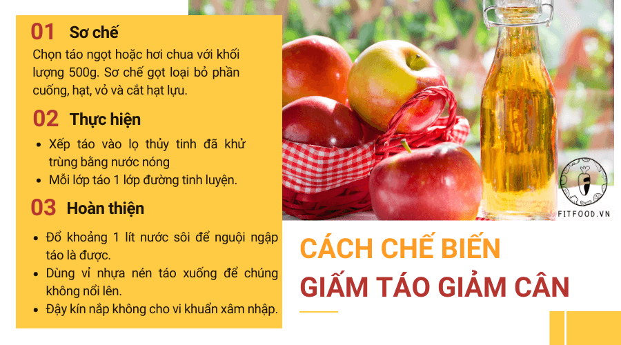 Giấm táo đã trở thành một bí quyết giảm cân phổ biến và hiệu quả. Một trong những cách đơn giản nhất để sử dụng giấm táo là pha loãng 1-2 muỗng canh với một ly nước ấm và uống trước khi ăn. Lời khuyên là nên uống khi bụng đói hoặc trước bữa ăn khoảng 15-30 phút để đạt được kết quả tốt nhất.