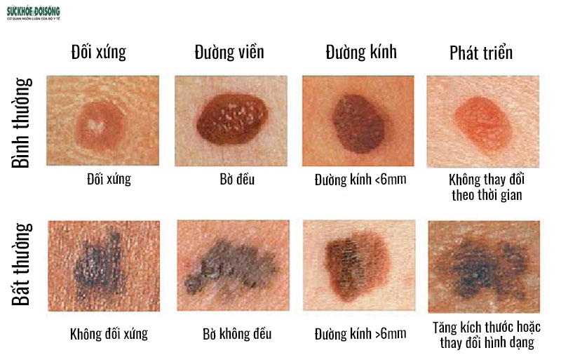 Một kinh nghiệm đơn giản để phân biệt là áp dụng quy tắc A-B-C-D: Asymmetry (không đối xứng), Border (viền không đều), Colour (màu sắc không đồng nhất) và Diameter (kích thước lớn). Nếu bạn nhận thấy bất kỳ thay đổi nào ở nốt ruồi của mình, hãy tham khảo ý kiến bác sĩ để được tư vấn kịp thời. Việc nắm rõ những dấu hiệu cảnh báo này sẽ giúp bạn bảo vệ sức khỏe làn da một cách tốt nhất.