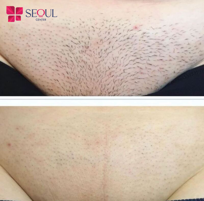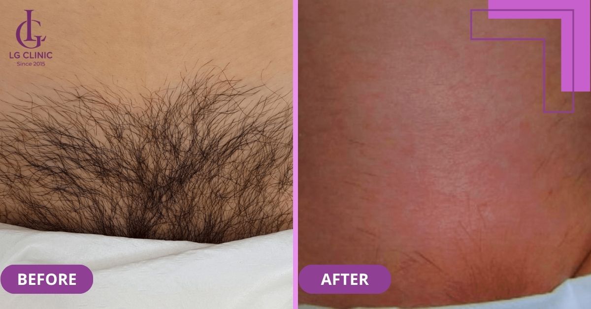So sánh hình ảnh vùng kín trước và sau khi triệt lông cho thấy sự khác biệt rõ rệt về mặt thẩm mỹ và cảm giác sạch sẽ. Trước khi triệt, vùng kín thường có lớp lông dày, rậm rạp, khiến nhiều người cảm thấy ngứa ngáy, khó chịu, đặc biệt vào mùa hè hoặc khi mặc đồ bó sát. Sau khi triệt, vùng da trở nên mịn màng, sạch sẽ hơn, lông mọc thưa và mảnh hơn rất nhiều, giúp chị em tự tin hơn khi diện bikini hay những trang phục gợi cảm.