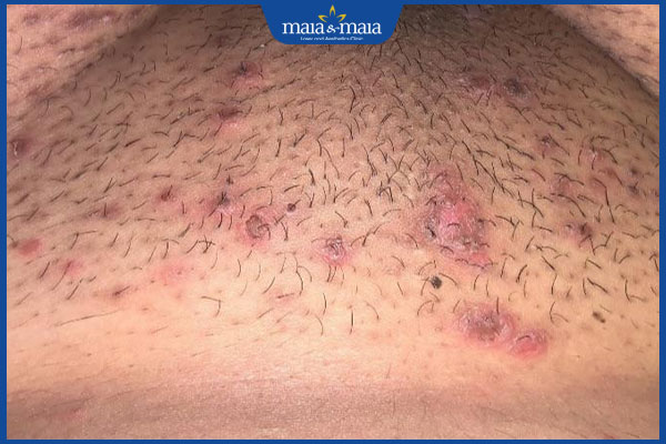 Ngoài ra, trong một số trường hợp, các khối sưng lớn có thể xuất hiện, mang lại cảm giác khó chịu hơn. Da vùng kín có thể biến đổi với những vết sưng tấy và mụn nước, điều này không chỉ ảnh hưởng đến sức khỏe mà còn gây mất tự tin trong sinh hoạt hàng ngày. Tình trạng vệ sinh không tốt, cùng với việc sử dụng xà phòng hay hóa chất mạnh, có thể khiến da bị kích ứng, tạo điều kiện cho viêm nang lông phát triển.