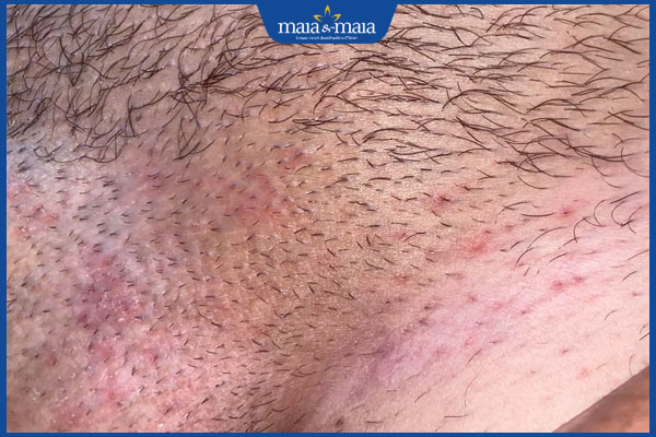 Viêm nang lông vùng kín là một tình trạng phổ biến mà cả nam và nữ đều có thể gặp phải, và những biểu hiện của nó có thể khác nhau tùy thuộc vào giới tính. Đối với nam giới, hình ảnh viêm nang lông thường xuất hiện dưới dạng các nốt mụn nhỏ, màu đỏ hoặc trắng, chủ yếu xung quanh vùng lông mu, bẹn và dương vật. Sự ngứa ngáy, khó chịu là cảm giác khó chịu đi kèm, và đôi khi các nốt mụn này có thể vỡ ra, gây chảy máu.