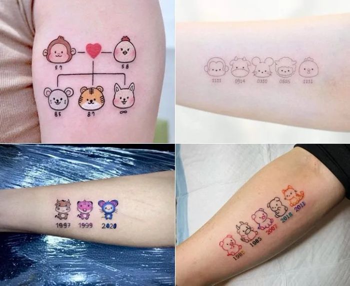 Nhiều người lựa chọn hình xăm mini 12 con giáp để thể hiện tuổi tác hoặc tình cảm dành cho gia đình. Những hình xăm này có thể là minh chứng cho mối liên kết bền chặt giữa các thế hệ, làm nổi bật sự gắn bó trong mỗi gia đình. Đặc biệt, hình xăm chibi dễ thương đang thu hút sự chú ý với phong cách nhí nhảnh và gần gũi.