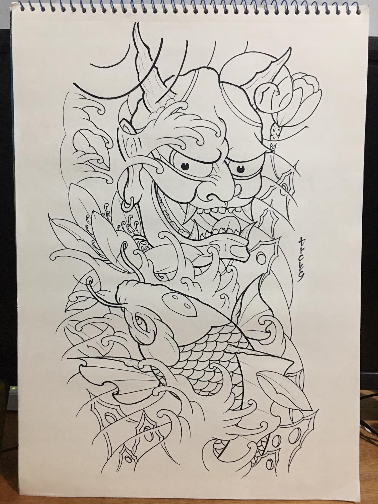 Sự kết hợp giữa cá chép và mặt quỷ tạo nên một hình xăm độc đáo, thể hiện cuộc sống với cả ánh sáng lẫn bóng tối. Những hình xăm này không chỉ có giá trị thẩm mỹ cao, mà còn truyền tải thông điệp về việc chống lại khó khăn và luôn duy trì hy vọng. Giá cả cho những tác phẩm này thường dao động từ 6 – 35 triệu, tùy thuộc vào độ phức tạp của thiết kế và tay nghề của thợ xăm.