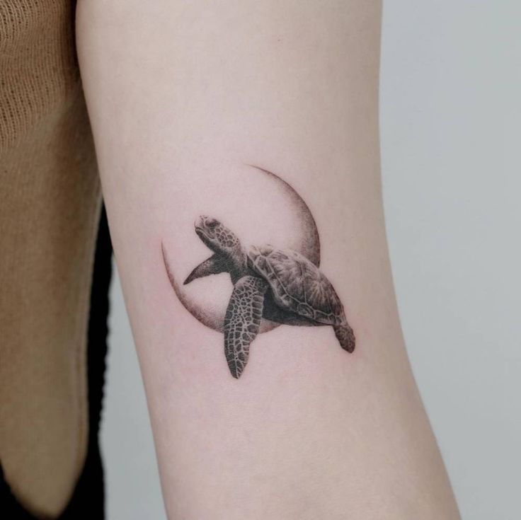 Hình xăm rùa mini tinh tế trên cánh tay bạn