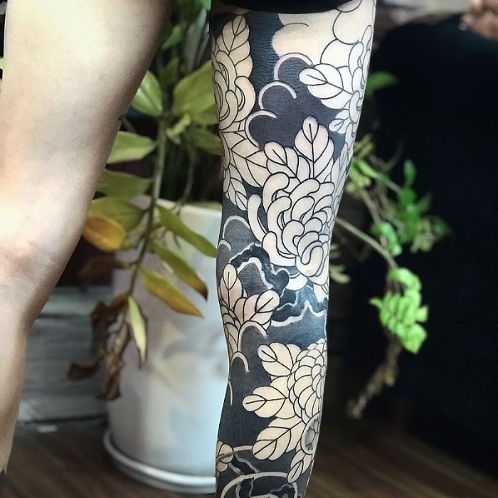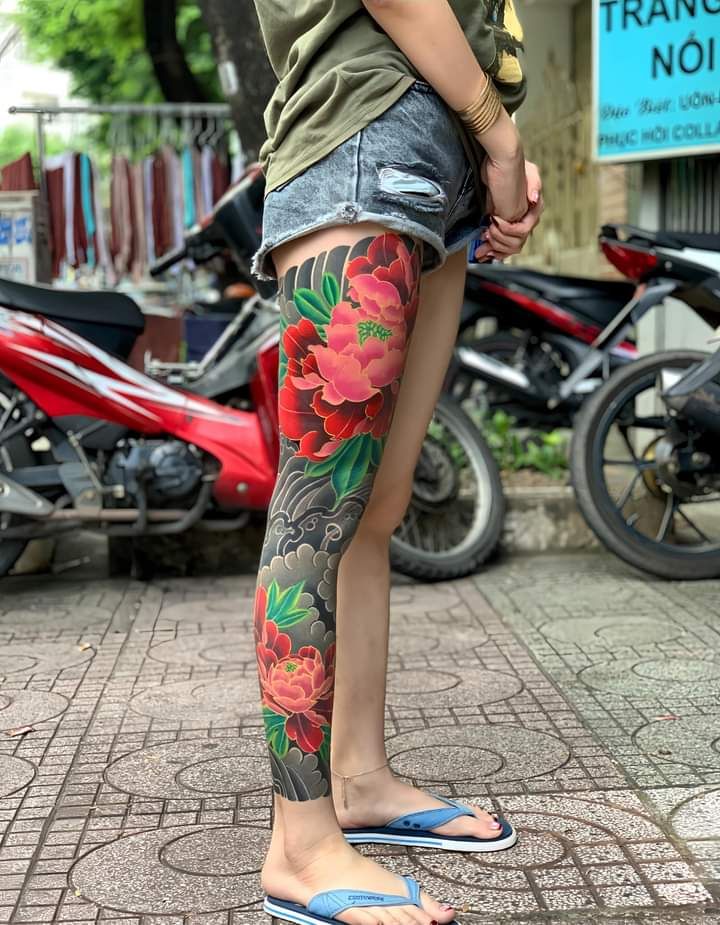 Phong cách Nhật Bản cũng là một trong những lựa chọn hàng đầu, với những chi tiết phức tạp và màu sắc tươi sáng. Những hình xăm này không chỉ làm nổi bật đôi chân mà còn thể hiện cá tính và tâm tư của người xăm. Bên cạnh đó, hình xăm hoa mẫu đơn hay các mẫu xăm trắng đen mang lại sự thanh nhã, phù hợp với văn hoá Á Châu.