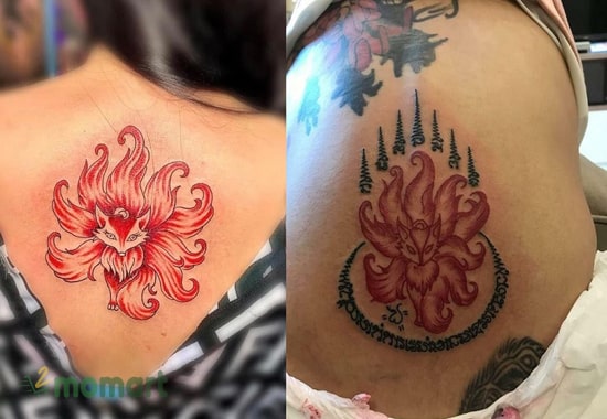 Hình xăm hồ ly 9 đuôi rất phổ biến tại Thái Lan và Ấn Độ, thường được thiết kế kèm theo dòng chữ Hindu và các họa tiết xoắn ốc. Với tính nghệ thuật cao, hình xăm này có thể được xăm ở những vị trí nổi bật như lưng hoặc tay. Đối với nam giới, đây là một lựa chọn vừa mạnh mẽ lại vừa quyến rũ.