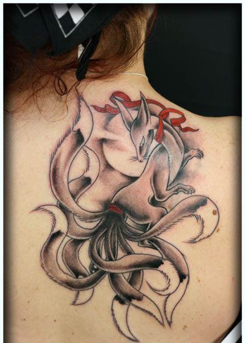 Hình xăm hồ ly chín đuôi uyển chuyển đầy ma mị