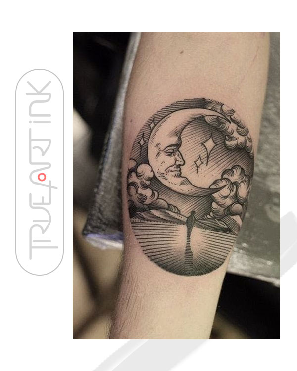 Hình Xăm Mặt Trăng Khuyết Cho Nam