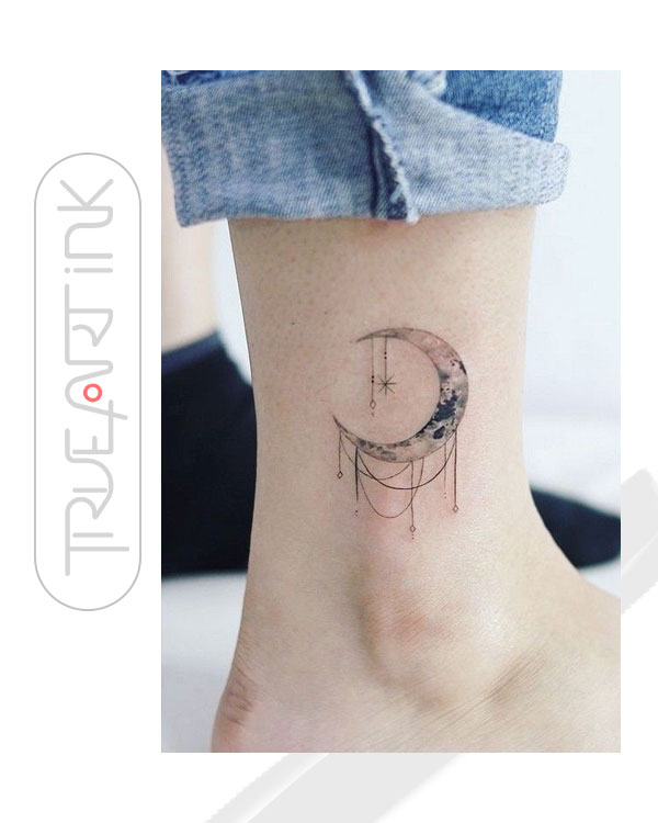 Hình xăm mặt trăng được thiết kế tinh tế với họa tiết dây leo quấn quanh cùng những ngôi sao nhỏ tạo điểm nhấn, mang đến một diện mạo mới lạ cho người xăm. Ý nghĩa của hình xăm mặt trăng thường gắn liền với sự thay đổi và tái sinh, tượng trưng cho những khởi đầu mới trong cuộc sống. Trong khi đó, hình xăm trăng khuyết cũng đại diện cho sự phóng thích và tự do.