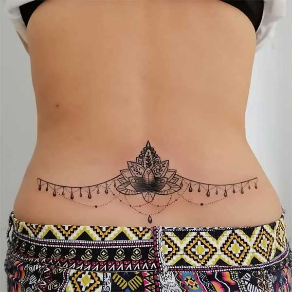 Hình xăm ở mông luôn mang một sức hút rất riêng, vừa kín đáo lại vừa quyến rũ. Vị trí này không quá phô trương nhưng lại rất gợi cảm, giúp người sở hữu thể hiện cá tính một cách tinh tế. Nhiều cô gái chọn những mẫu hoa văn lớn, cầu kỳ hoặc những dòng chữ nhỏ xinh để tạo điểm nhấn cho vòng 3 của mình. Những hình xăm hoa văn đối xứng, lấy cảm hứng từ phong cách gothic hay các cánh hoa bung nở, không chỉ làm tăng vẻ đẹp mà còn thể hiện sự mạnh mẽ, cuốn hút đặc biệt khi diện những trang phục hở nhẹ phần mông.