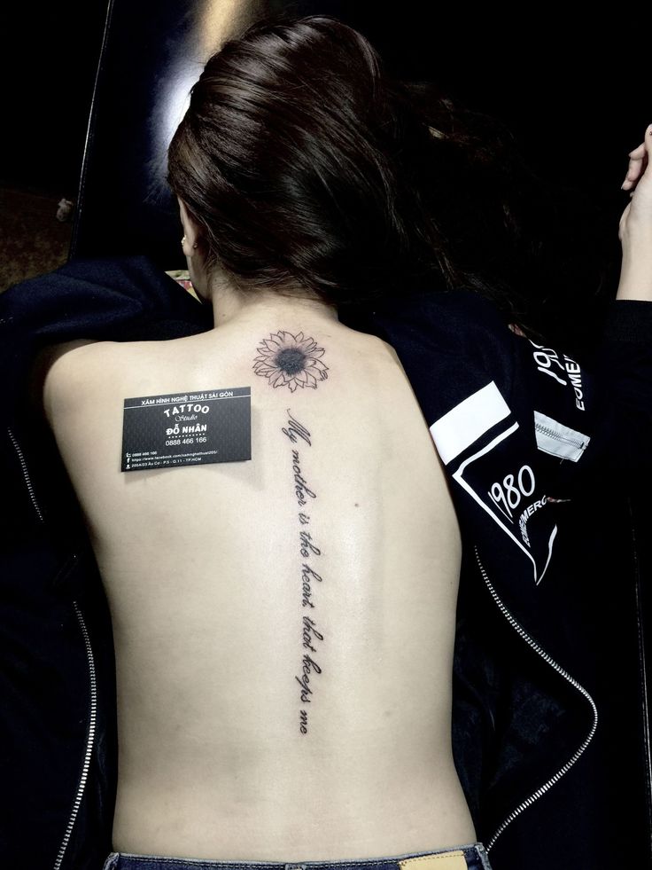 Nhiều người yêu thích hình xăm chữ vì ý nghĩa sâu sắc mà nó mang lại. Những câu quote truyền cảm hứng hay những thông điệp tích cực được khắc sâu trên cơ thể chính là cách để ghi nhớ những giá trị sống quan trọng. Bên cạnh đó, hình xăm dọc sống lưng cũng giúp tạo ấn tượng mạnh mẽ trong mắt người đối diện.