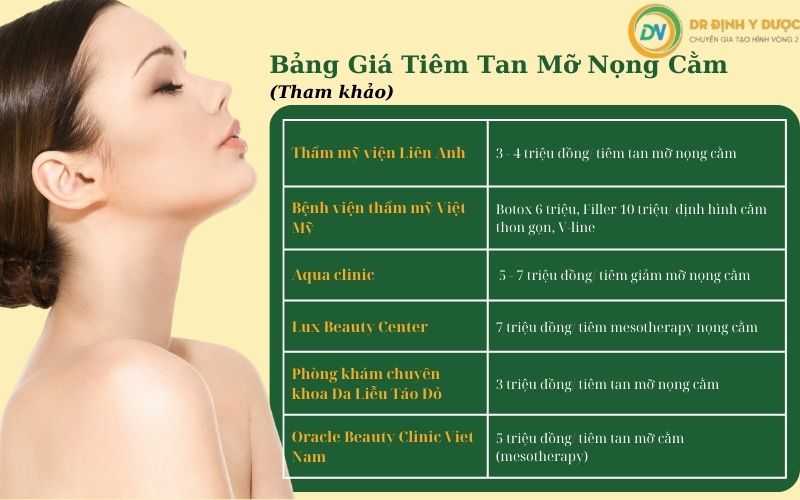 Hút mỡ nọng cằm là phương pháp thẩm mỹ giúp loại bỏ mỡ thừa dưới cằm, mang lại khuôn mặt thon gọn và tự tin hơn. Về chi phí, hiện nay giá hút mỡ nọng cằm dao động khá đa dạng tùy theo cơ sở thực hiện và công nghệ áp dụng. Thông thường, mức giá phổ biến trên thị trường nằm trong khoảng từ 15 đến 20 triệu đồng cho một ca hút mỡ nọng cằm tại các phòng khám uy tín.