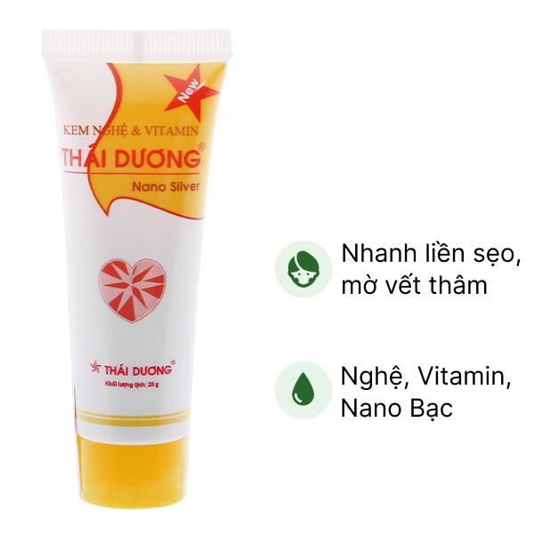 Một trong những sản phẩm đáng chú ý là Kem nghệ và Vitamin Thái Dương Nano Bạc. Sản phẩm không chỉ nhanh chóng giúp da liền sẹo mà còn hỗ trợ hạn chế sự xuất hiện của các vết thâm do mụn hay vết bỏng nhẹ để lại. Sau một thời gian sử dụng, bạn sẽ cảm nhận rõ rệt sự cải thiện của làn da mình, với các vết sẹo giảm sưng và mờ dần đi.