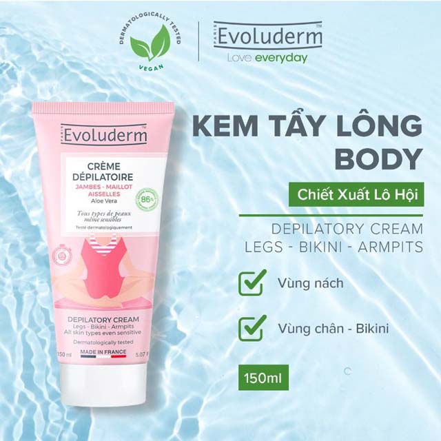 Kem tẩy lông Evoluderm là một sản phẩm tuyệt vời dành cho những ai muốn có làn da mịn màng, sạch sẽ chỉ trong vòng 5 phút. Với công thức chiết xuất từ nha đam và bơ hạt mỡ, sản phẩm không chỉ hiệu quả trong việc loại bỏ lông mà còn giúp dưỡng ẩm, làm dịu da sau khi tẩy lông. Chính vì thế, kem rất phù hợp cho cả những vùng da nhạy cảm như nách và bikini.