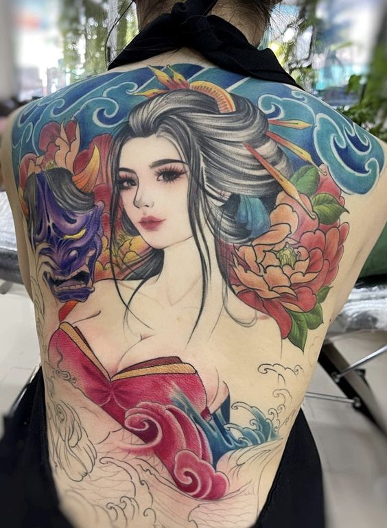 Ngoài ra, hình xăm còn thể hiện kỹ thuật tuyệt mỹ của nghệ thuật xăm Nhật Bản, như irezumi với màu sắc bền và nét shading ấn tượng. Những mẫu hình xăm lớn như full lưng không chỉ nổi bật mà còn mang đến câu chuyện riêng, thể hiện cá tính của người sở hữu. Hãy khám phá những mẫu hình xăm cô gái Nhật để tìm kiếm cho mình một dấu ấn nghệ thuật đặc biệt nhé!
