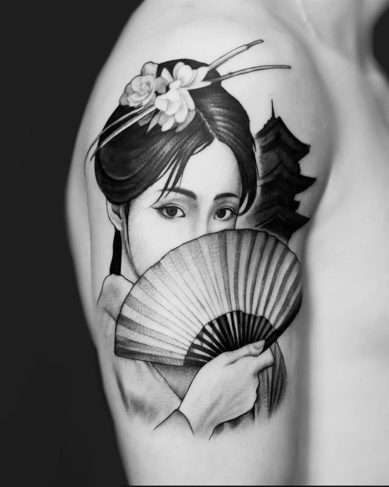 Hình xăm cô gái Nhật thường được kết hợp với các biểu tượng như quạt, mặt nạ quỷ, tạo nên sự độc đáo và ý nghĩa sâu sắc. Chúng không chỉ thể hiện cái đẹp bên ngoài mà còn nhắc nhở người sở hữu về cách cư xử khéo léo trong cuộc sống. Đặc biệt, hình xăm geisha mang lại cho người nhìn cảm nhận về sự cổ điển, nhưng cũng vô cùng sống động qua từng đường nét nghệ thuật.