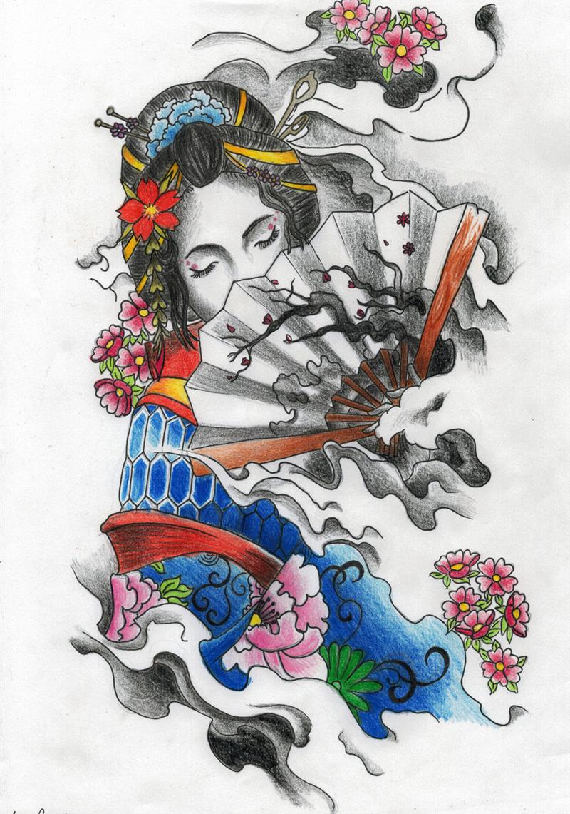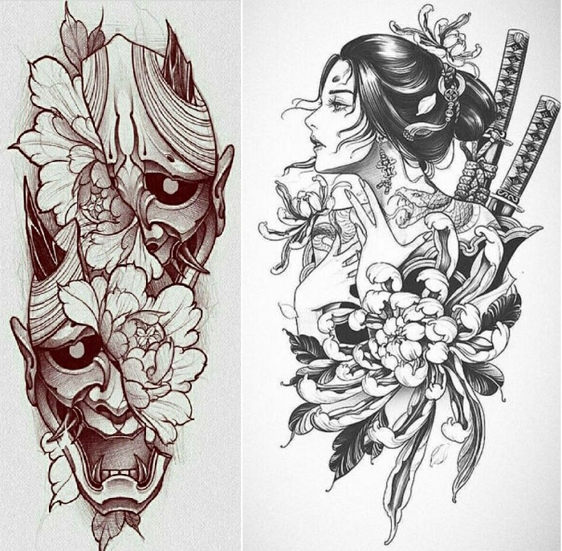 Một trong những kiểu hình xăm phổ biến nhất là geisha, thường thấy với thiết kế phủ kín toàn bộ cánh tay. Những tác phẩm này tạo ra bức tranh liền mạch, từ vai đến cổ tay, khiến người xem không thể rời mắt. Hình xăm geisha còn biểu trưng cho sự khôn khéo và tài năng của phụ nữ, nhắc nhở người sở hữu về việc phải biết quý trọng cái đẹp và giữ bản thân khỏi những cạm bẫy của cuộc sống.
