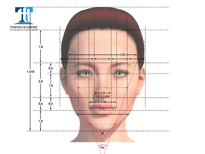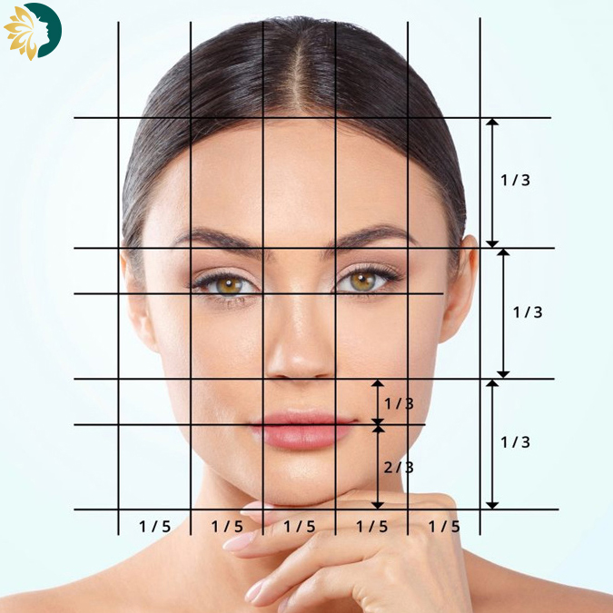 Khi nói đến vẻ đẹp của khuôn mặt, tỷ lệ vàng 1:1.618 (tỷ lệ vàng) đóng một vai trò khá quan trọng. Theo quan niệm chung, một khuôn mặt đẹp nên có tỷ lệ 1/5 chiều dọc và 1/3 chiều ngang. Điều này có nghĩa là các phần trên khuôn mặt nên được chia thành ba phần, giúp tạo nên sự cân đối, hài hòa cho tổng thể.