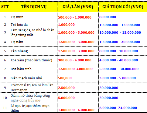 Ngoài ra, tiêm mesotherapy cũng là một lựa chọn với chi phí khoảng 4.150.000 đồng mỗi lần tiêm. Tùy theo tình trạng sẹo nhẹ, trung bình hay nặng mà chi phí có thể thay đổi, dao động từ khoảng 1.440.000 đến 3.800.000 đồng cho mỗi phương pháp điều trị. Bên cạnh đó, chất lượng dịch vụ, tay nghề bác sĩ và trang thiết bị cũng ảnh hưởng đến mức giá cuối cùng.