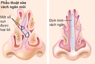Trong trường hợp vách ngăn mũi lệch nặng, phẫu thuật chỉnh tạo sẽ là phương pháp hữu hiệu hơn. Bác sĩ có thể điều chỉnh lại vách ngăn, phân chia hai hốc mũi bằng cách chỉnh gọt, hoặc thay thế bằng xương hoặc sụn. Cuối cùng, cũng nên lưu ý tư thế ngủ, nằm nghiêng về một bên sẽ giúp giảm cảm giác khó thở trong những trường hợp này.