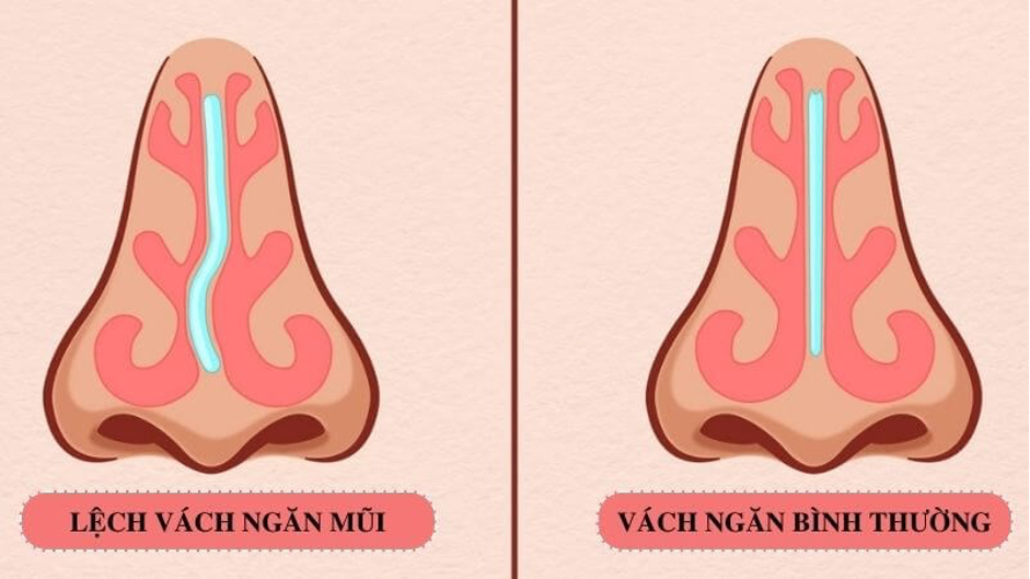 Để nhận biết tình trạng lệch vách ngăn, bạn có thể chú ý đến các triệu chứng như nghẹt mũi, cảm giác đau ở vùng mặt, hoặc thở ồn ào khi ngủ. Đặc biệt, nếu bạn thường nằm nghiêng về một bên để dễ thở thì rất có thể bạn đang gặp vấn đề này. Nguyên nhân có thể xuất phát từ những tổn thương do tai nạn hoặc thậm chí bẩm sinh.