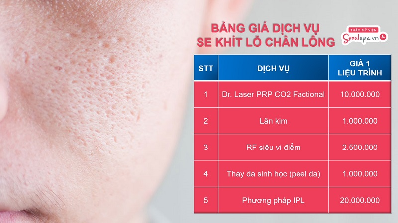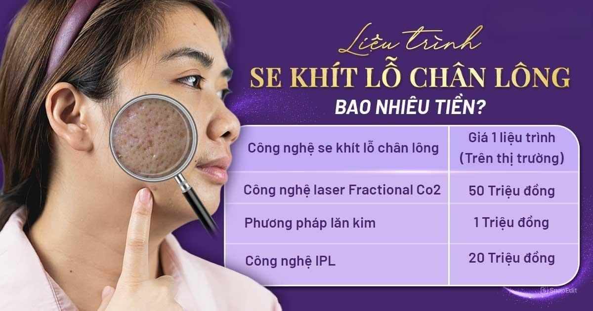 Khi bạn đang tìm kiếm phương pháp se khít lỗ chân lông, một trong những điều quan trọng cần lưu ý là chi phí. Giá của liệu trình này thường dao động từ 1 đến 10 triệu đồng, tùy thuộc vào tình trạng da và địa chỉ thực hiện. Nếu bạn chọn thực hiện tại các trung tâm thẩm mỹ uy tín, có thể bạn sẽ phải đầu tư nhiều hơn, nhưng bù lại, bạn sẽ nhận được dịch vụ chất lượng hơn.