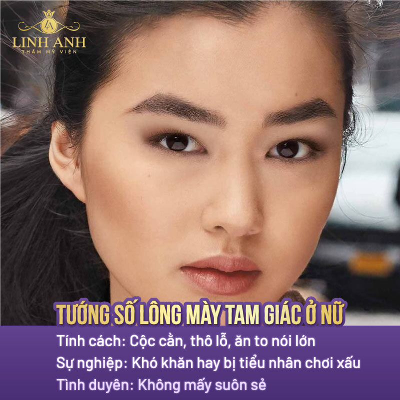 Những người sở hữu dáng lông mày tam giác thường được nhận xét là mạnh mẽ và quyến rũ. Họ thường có tính cách quyết đoán, năng động và tràn đầy năng lượng. Đặc điểm lông mày rậm và có độ cong nhẹ ở phần giữa giúp tôn lên vẻ cá tính, nổi bật và cuốn hút.