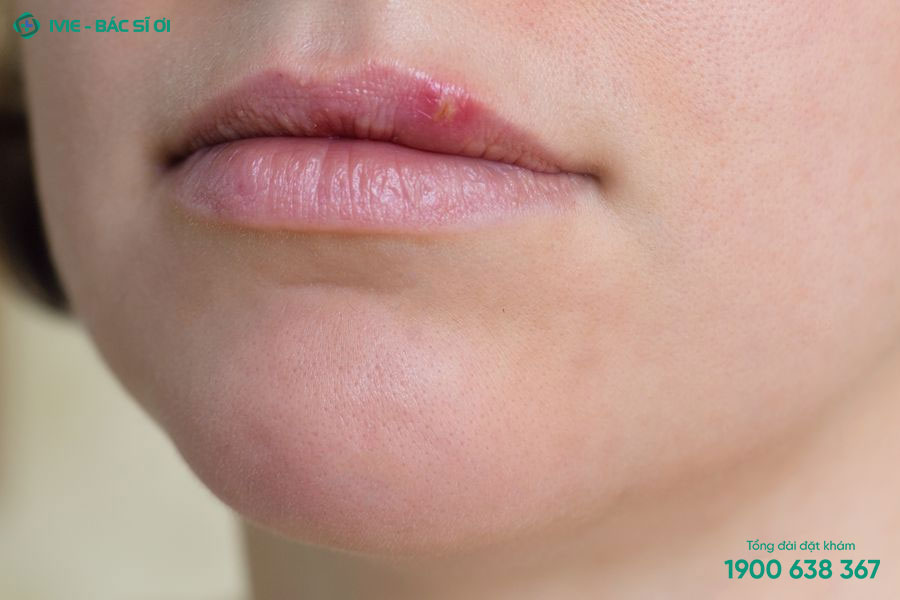 Bị nổi mụn nước ở mép môi là hiện tượng lớp da ở vùng môi phồng lên, bên trong chứa dịch trong suốt hoặc có thể lẫn máu. Những nốt mụn này thường nhỏ, mọc thành từng đám và gây cảm giác ngứa ngáy, khó chịu, thậm chí đau rát khi ăn uống hoặc nói chuyện. Mụn nước rất dễ vỡ khi chạm vào, khiến dịch bên trong lan ra, làm mụn lây lan rộng hơn và để lại vảy cứng vàng khi khô.